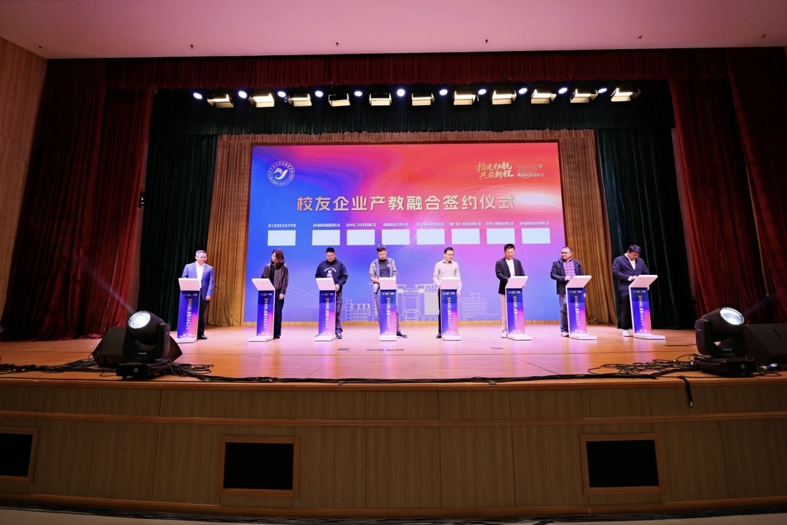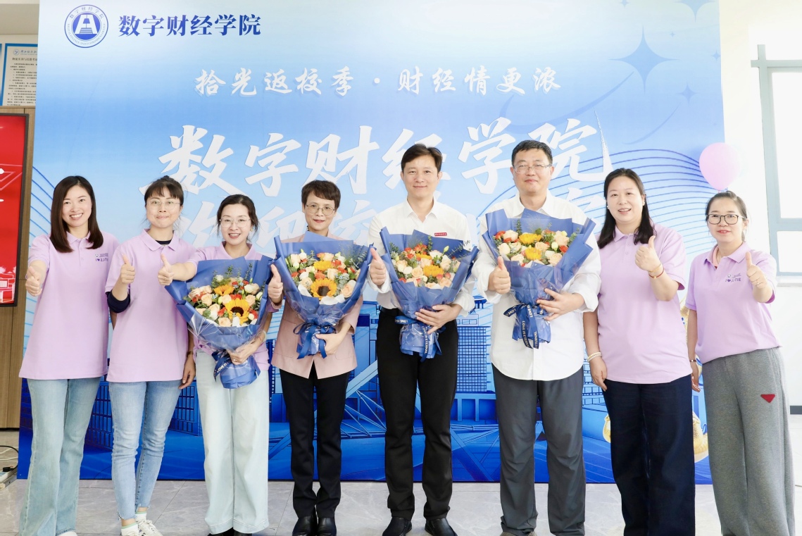 在本次学校校友返校欢迎大会上,数字财经学院校友会会长沈海俊参加校友企业产教融合签约仪式,沈青青、戴嘉文、周浩男三位优秀校友被评为校友导师。未来,他们将一如既往心系母校,与母校携手同行,共启新程!