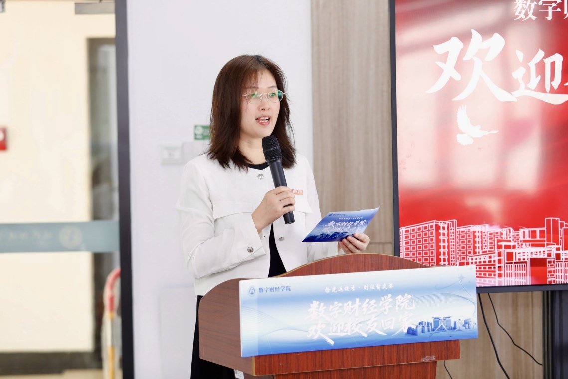 王茜院长向校友们深情回顾了学院近年来的发展历程。她介绍道,学院始终秉持“数智赋能·财商育人”的宗旨,在专业建设、师资队伍、人才培养与社会服务等方面均取得了丰硕成果。她强调,这些成绩的取得,离不开广大校友的长期关注与鼎力支持。希望校友们继续支持学院的每一步发展,为学院的建设建言献策。