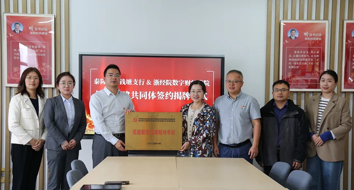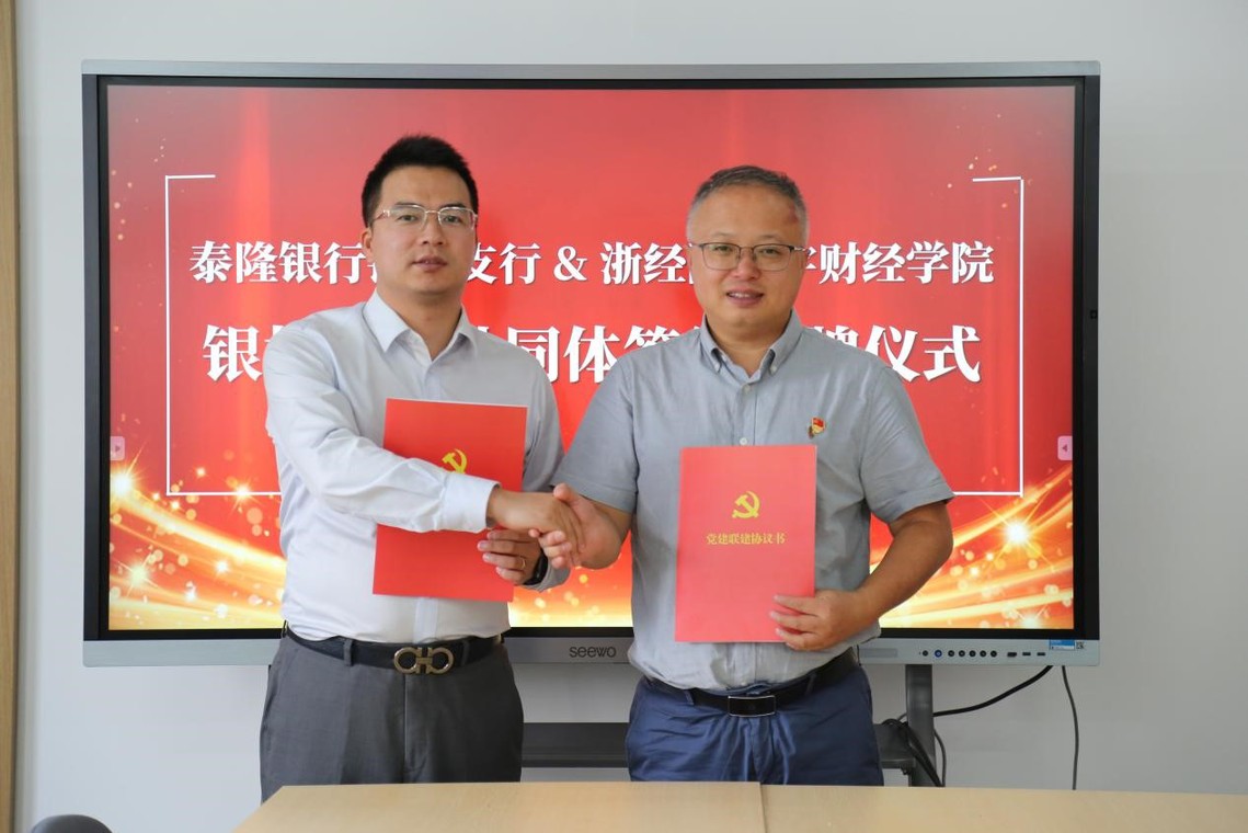 10月24日下午,泰隆银行钱塘支行行长蒋生火、客户经理郑欣到访我院,与学院党总支书记张芦军、院长王茜、党总支副书记陈可、副院长单松、金融服务与管理专业副主任吴珊共同开展党建联建暨银校合作交流。双方围绕党支部结对共建、产教融合、协同育人等议题达成战略合作,并正式签署“银校党建联建”协议。