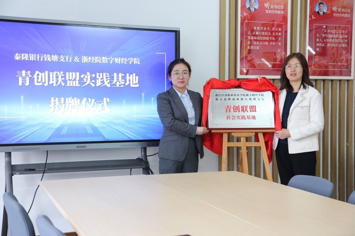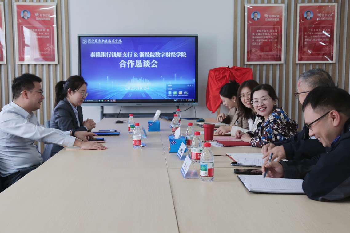 为进一步深化产教融合、校企合作,创新人才培养模式,10月24日下午,泰隆银行钱塘支行行长蒋生火、客户经理郑欣一行到访浙江经济职业技术学院数字财经学院,双方开展校企合作交流并举行青创联盟实践基地揭牌仪式。本次活动由数字财经学院院长王茜主持。