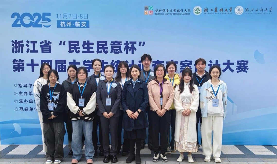 11月7日-8日,浙江省“民生民意杯”第十四届大学生统计调查方案设计大赛在浙江农林大学圆满落下帷幕。经过激烈角逐,我校数字财经学院杨桂苓、王嘉佳、章学萍指导的2支参赛队伍发挥出色,获得两个一等奖。这是我校连续六年在该项赛事中获得一等奖的佳绩,充分展示了我校学生在统计调查与数据分析领域的强大实力。学校获得优秀组织奖。