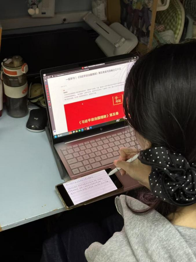 本次活动以学习《习近平谈治国理政》第五卷为核心内容,通过“线上学习+答题实践+理论总结”的形式,一是依托“学习强国”平台,组织大家学习《习近平谈治国理政》第五卷音频版,并安排专题的思政微答题巩固学习成效,以“听+答”的方式深化对理论知识的理解与记忆;二是撰写“理论学习卡片”,围绕所学内容提炼核心思想、金句与要点,并结合个人学习、生活实际,撰写感悟,真正做到学思用贯通、知信行统一。