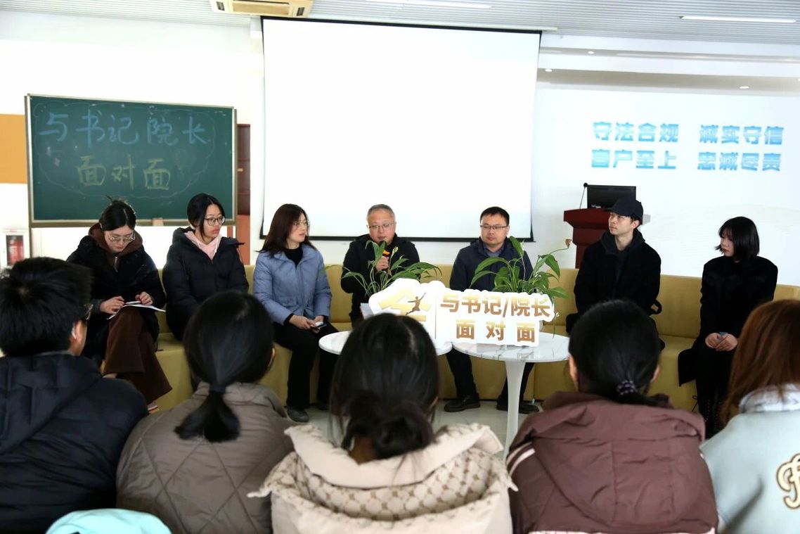 为深入了解学生需求,畅通师生沟通渠道,12月29日,数字财经学院举办“我与书记/院长面对面”师生座谈会。学院党总支书记张芦军、党总支副书记陈可、副院长单松出席座谈会,与各年级学生代表围桌而坐,共话成长、共谋发展。