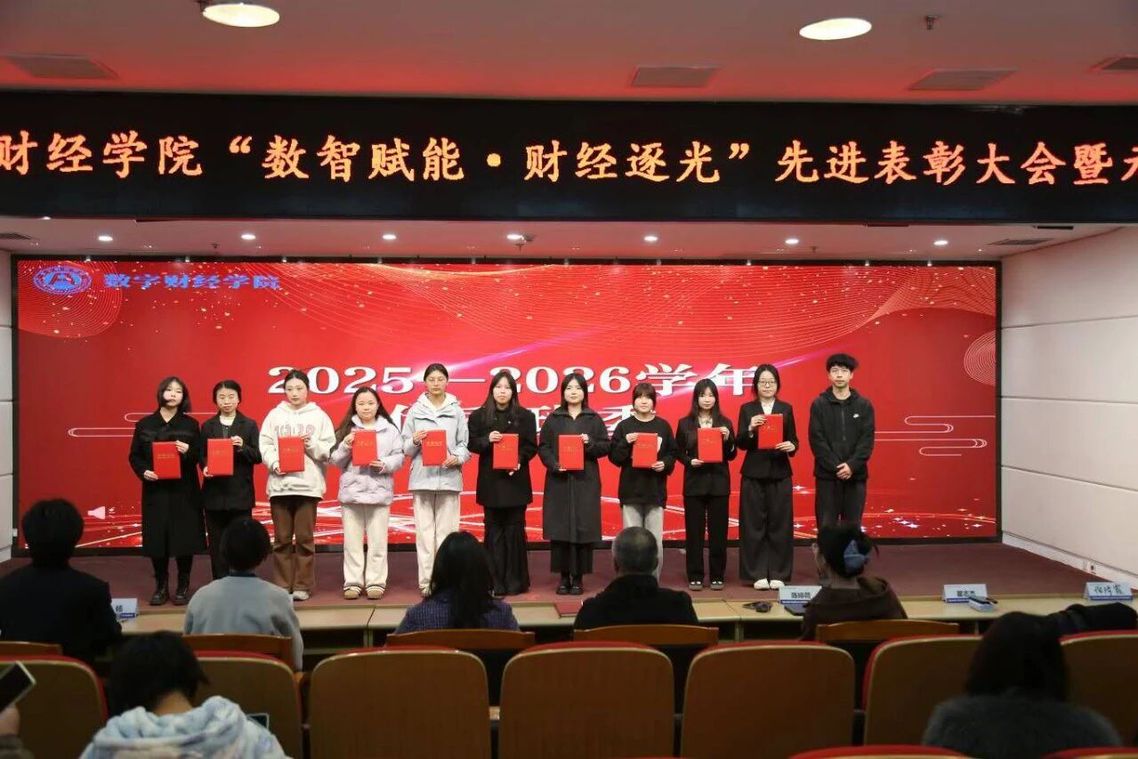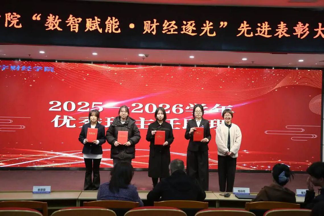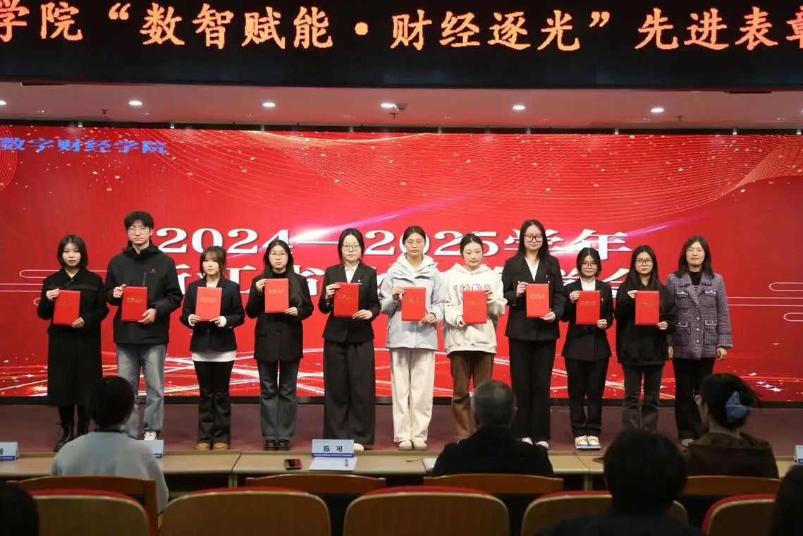 星光不负赶路人,时光不负奋斗者。12月29日,2025年数字财经学院“数智赋能·财经逐光”先进表彰大会顺利召开。学院党总支书记张芦军,党总支副书记陈可,学工办主任陈婷荷,辅导员董蓉蓉、瞿志杰、吴杨与获奖集体及个人出席本次大会。