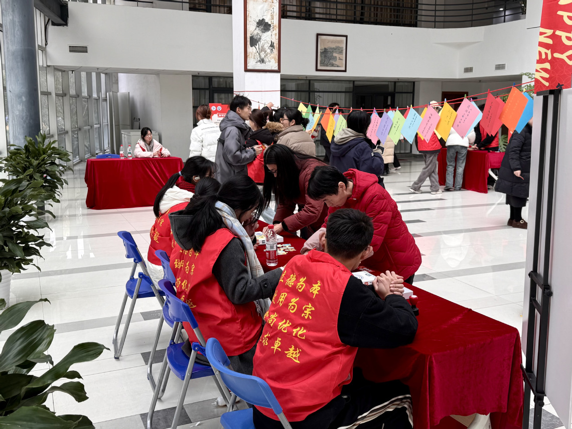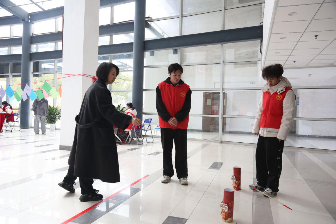 在“财智灯谜猜猜看”区,师生们争相破解如“钱塘观潮起(看涨)”“进出蒙古包(往来账户)”“一诺千金(信贷)”“金鸡倒立(基金)”等巧妙融合财经术语的趣味灯谜;在“财韵投壶箭准盈”区,参与者通过精准投掷模拟投资决策中的风险与收益平衡;“财富沙包掷圆靶”则以不同分值环靶引导学生思考风险偏好与资产配置;“财速拼图启思维”锻炼资源整合与战略规划能力;而“财墨挥春写福联”则将传统文化与财商智慧相融,师生挥毫书写“理财有道,守信为金”等蕴含财经哲理的春联,既传承文化,又涵养财德。